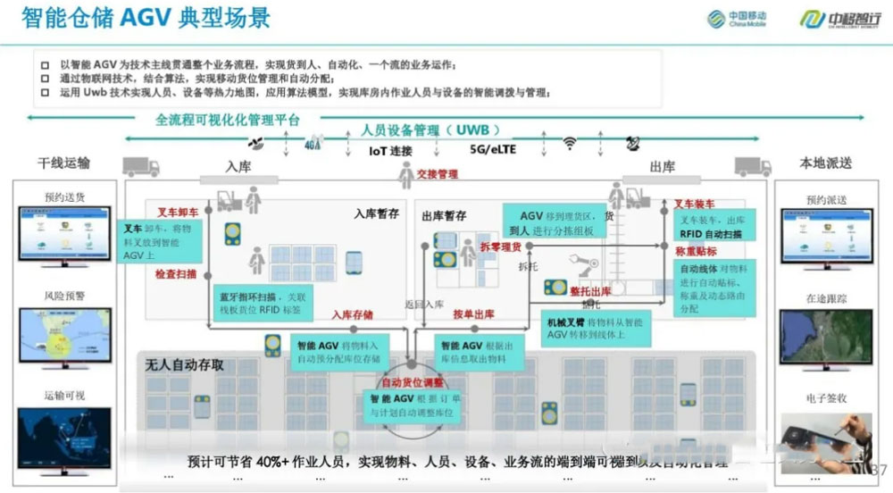 以智能AGV为技术主线贯通整个业务流程,实现货到人自动化,一个流的业务运作;